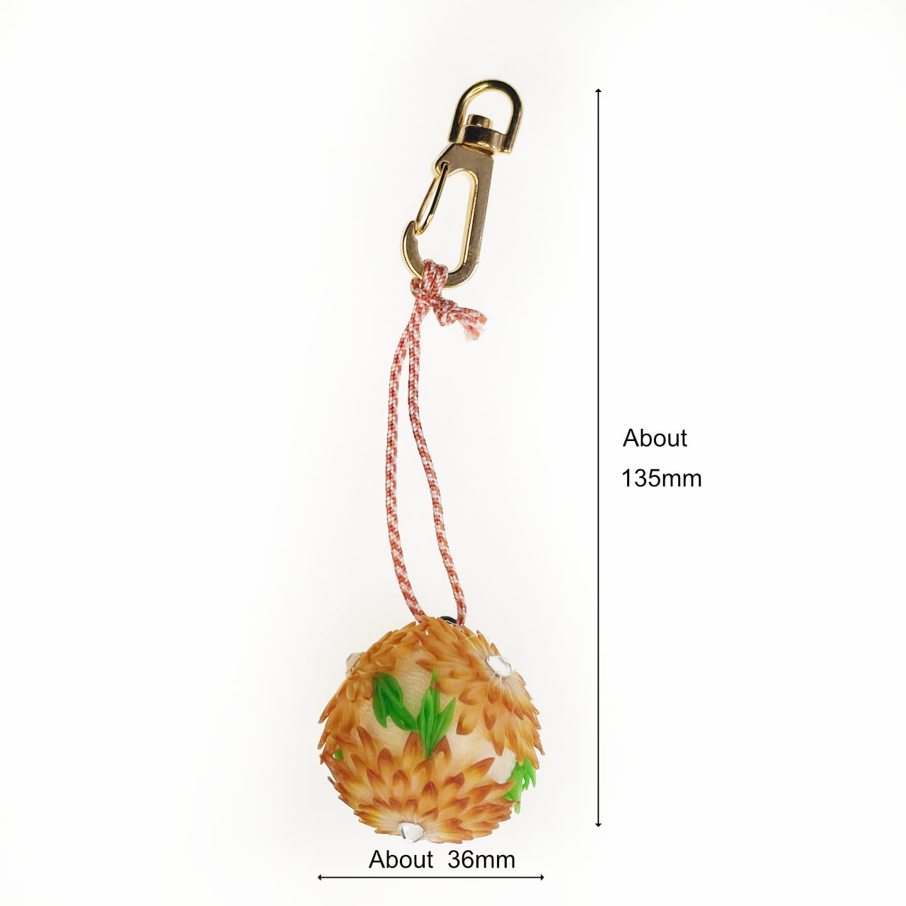 このチャームは、軽やかさを重視し、球体の芯材には発泡スチロールを採用しております。そのため、バッグチャームとして持ち運びやすいのが魅力ですが、お取り扱いの際は、変形しないよう優しく扱っていただけると幸いです。保管の際も、上から物を置かないようご注意ください。